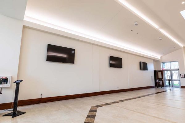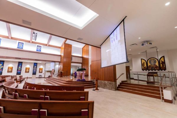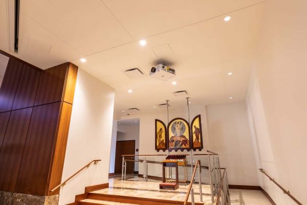 - 12K HD laser projectors and zoom robotic cameras to capture all the future baptisms, weddings, and large events. The video extends to several LCD screens in the narthex.