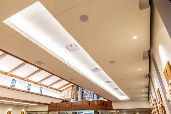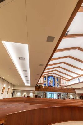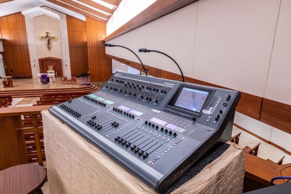Built in 1946, historic St. Theresa Catholic Church sits in the middle of bustling Memorial Park in Houston, TX. Needing a refresh for 2020, the parish initiated a full remodel of the main church Nave audio visual systems. Prime-Systems designed a robust system to match the detailed aesthetics designed by Merriman Holt Powell architects.