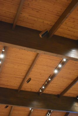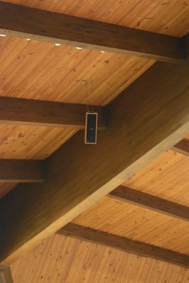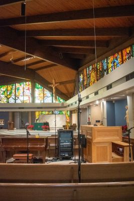 - Flown Bose Professional 402 speakers with custom wood housing to match the nave ceiling.