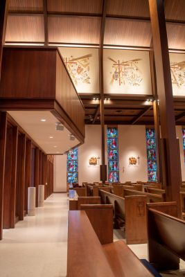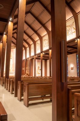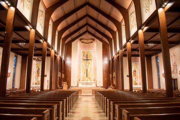 - Bose professional line array speakers installed on the columns and in the choir loft to provide even coverage throughout the space. The speakers were custom color matched for this venue.