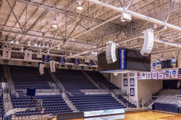 - Martin W8LM line array system to distribute sound evently to the seats and court. The system is all white to blend into the ceiling.