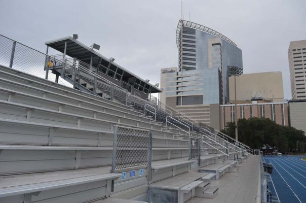 The Wendel D. Ley Track and Field Stadium at Rice University seats 1500 Rice Owl fans cheering on NCAA champions and future Olympians.