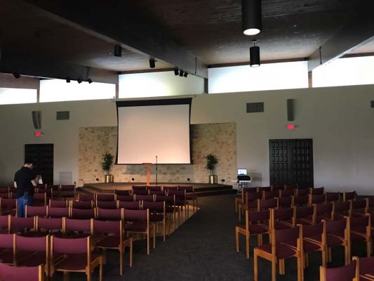 As the hub of social activity and fellowship at St. John Vianney Catholic Church, the Parish Hall needed a simple but effective video system. Our video team designed a system that utilized the space's existing setup for a quick and effective install, just in time for the church's next event.