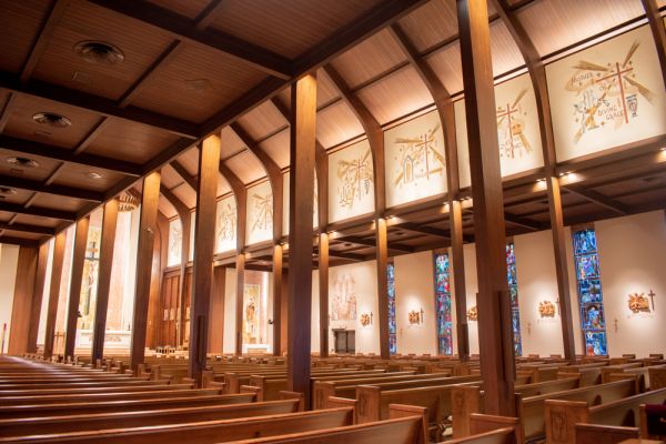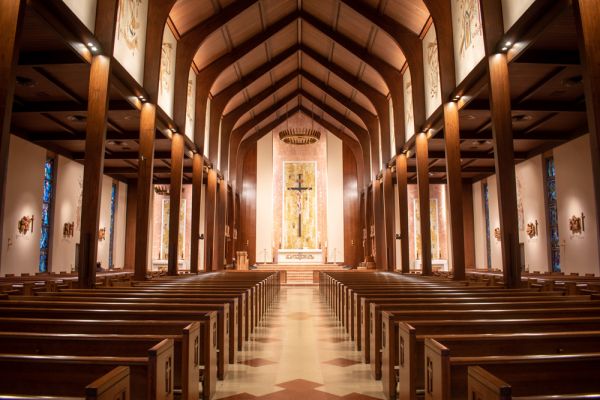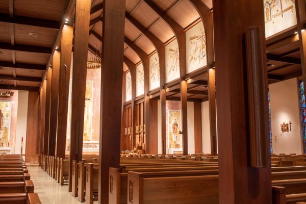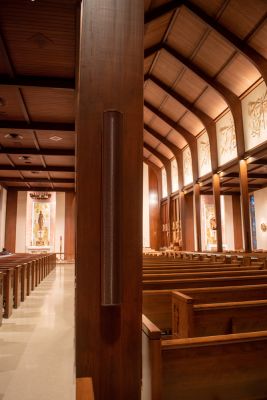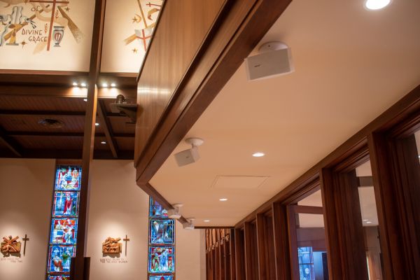 - Bose professional line array speakers installed on the columns and in the choir loft to provide even coverage throughout the space. The speakers were custom color matched for this venue.
