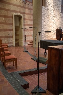 - Sennheiser microphone system for the priests with automatic mixing to eliminate the need for engineers at each mass.