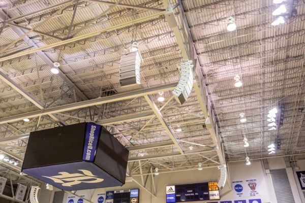 - Martin W8LM line array system to distribute sound evently to the seats and court. The system is all white to blend into the ceiling.