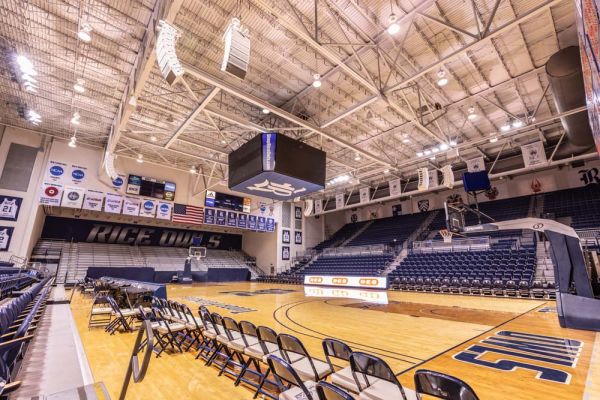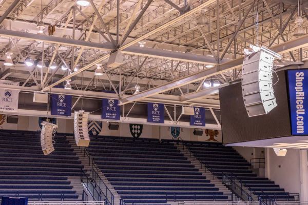 Rice University's Tudor Fieldhouse needed a major upgrade to their 5000+ seat multi-use gymnasium at their D1 facility. The new system needed to be able to handle NCAA basketball games, volleyball games, graduations, and private events in the space.